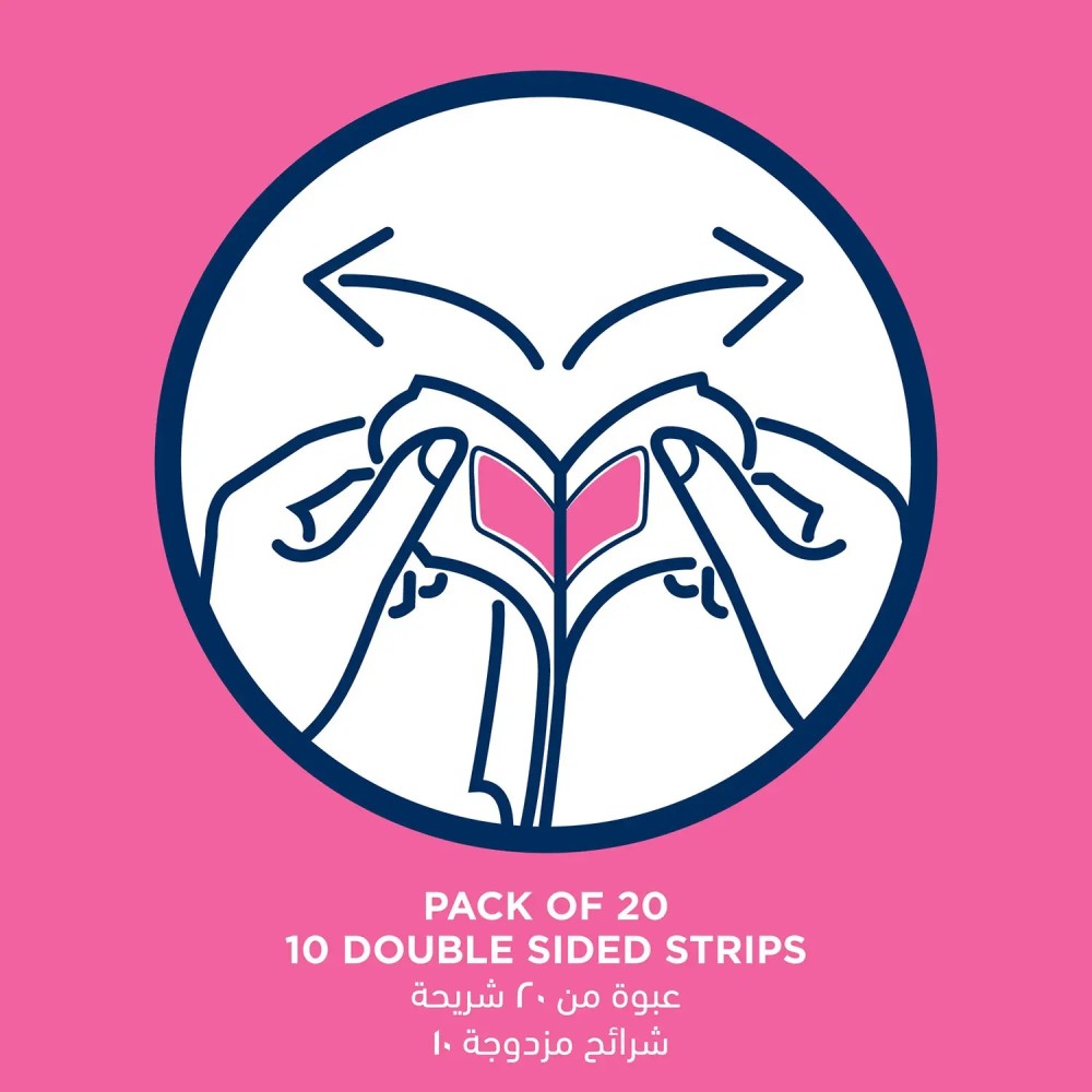 - شرائط الشمع هذه رائعة للاستخدام الفوري ولا تتطلب تسخينًا ، مما يعني لا مجال لحدوث الفوضى! استخدمي مناديل النهايات المثالية المتوفرة مع كل عبوة لتسهيل عملية التنظيف وما بعد الاستخدام.