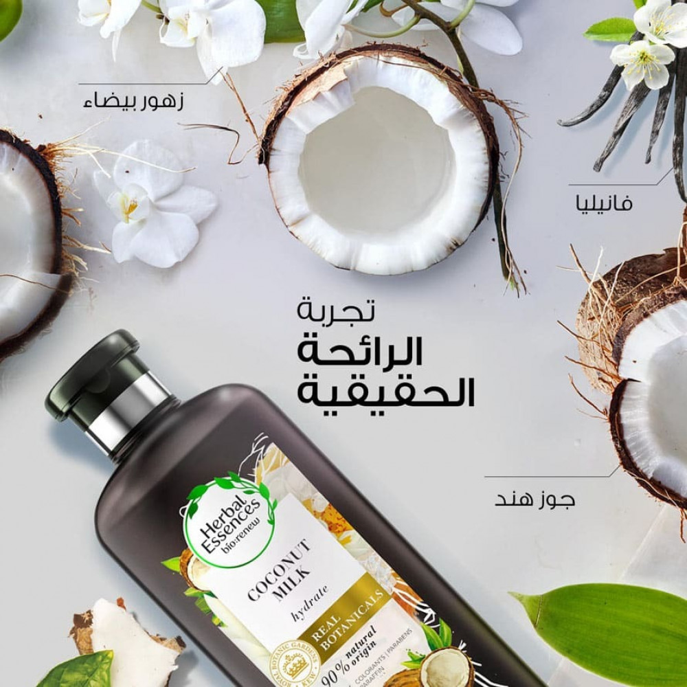 صُنع شامبو ھربل إیسنسز بيو: رينيو الطبيعي بلبن جوز الهند لترطيب الشعر، بمزيجنا المميز من النباتات الطبيعية، ينظف الشعر ويمنحه الترطيب اللازم، كما أنه يقويه ويحميه من التلف والأطراف المتقصفة. يعمل هذا الشامبو، الغني بمكونات طبيعية بنسبة 90%، على ترطيب الشعر ويتركه ناعمًا كالحرير ويمكن التحكم به. والنتيجة؟ شعر ناعم منسدل، وذلك بفضل تركيبة ھربل إیسنسز بيو: رينيو. سيأخذك شامبو ھربل إیسنسز الطبيعي بلبن جوز الهند لترطيب الشعر، بمجرد فتح الغطاء إلى تجربة بروائح متعددة - اغمري نفسك برائحة جوز الهند النابضة بالحيوية، ثم استعدي لتلقي باقة من الزهور البيضاء تتبعها رائحة فانيليا الثابتة.