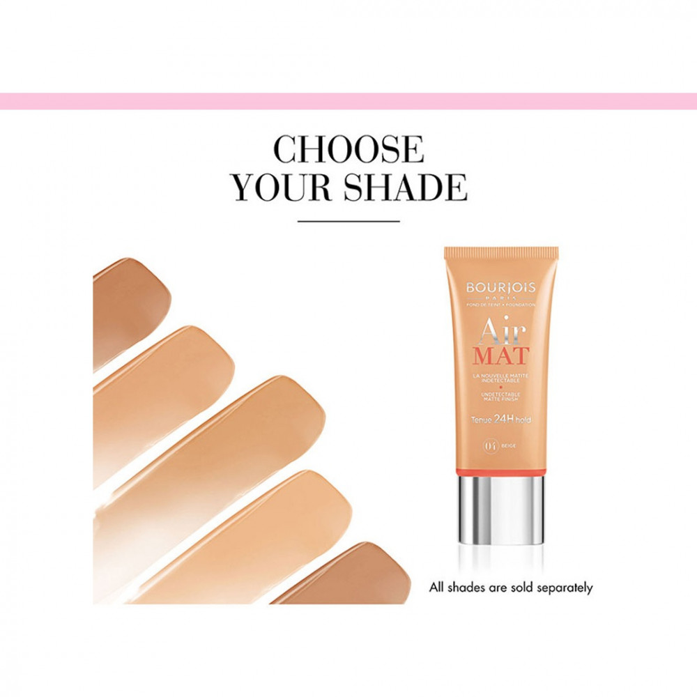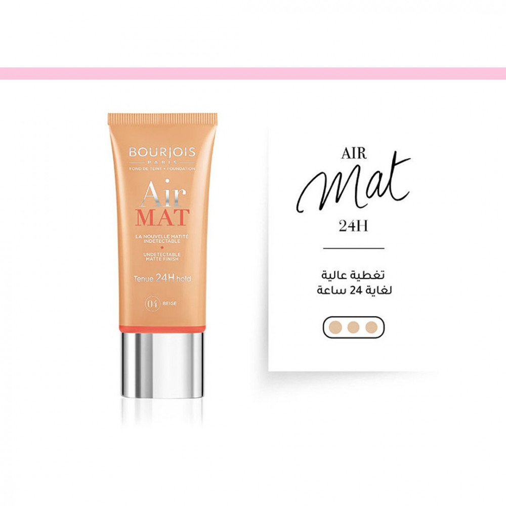 كريم أساس اير مات من برجوا يمنحك تغطية كاملة للبشرة بدون شوائب تدوم لمدة 24 ساعة.