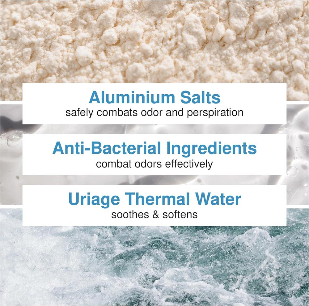 - غني بالمياه الحرارية من يورياج والمكونات المهدئة لتهدئة منطقة الإبط الحساسة.