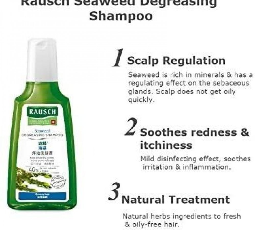 شامبو لمعالجة طبيعة الشعر الدهنية بخلاصة الطحلب البحري أخضر 200مل من راوش السويسرية
