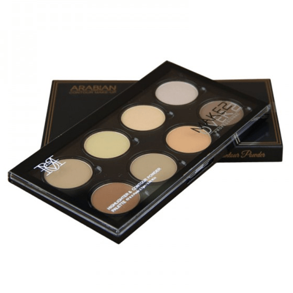 تأتي بقوام بودرة ناعمة بأربع الوان محدد الوجه و أربع الوان اضاءة أساسية.
