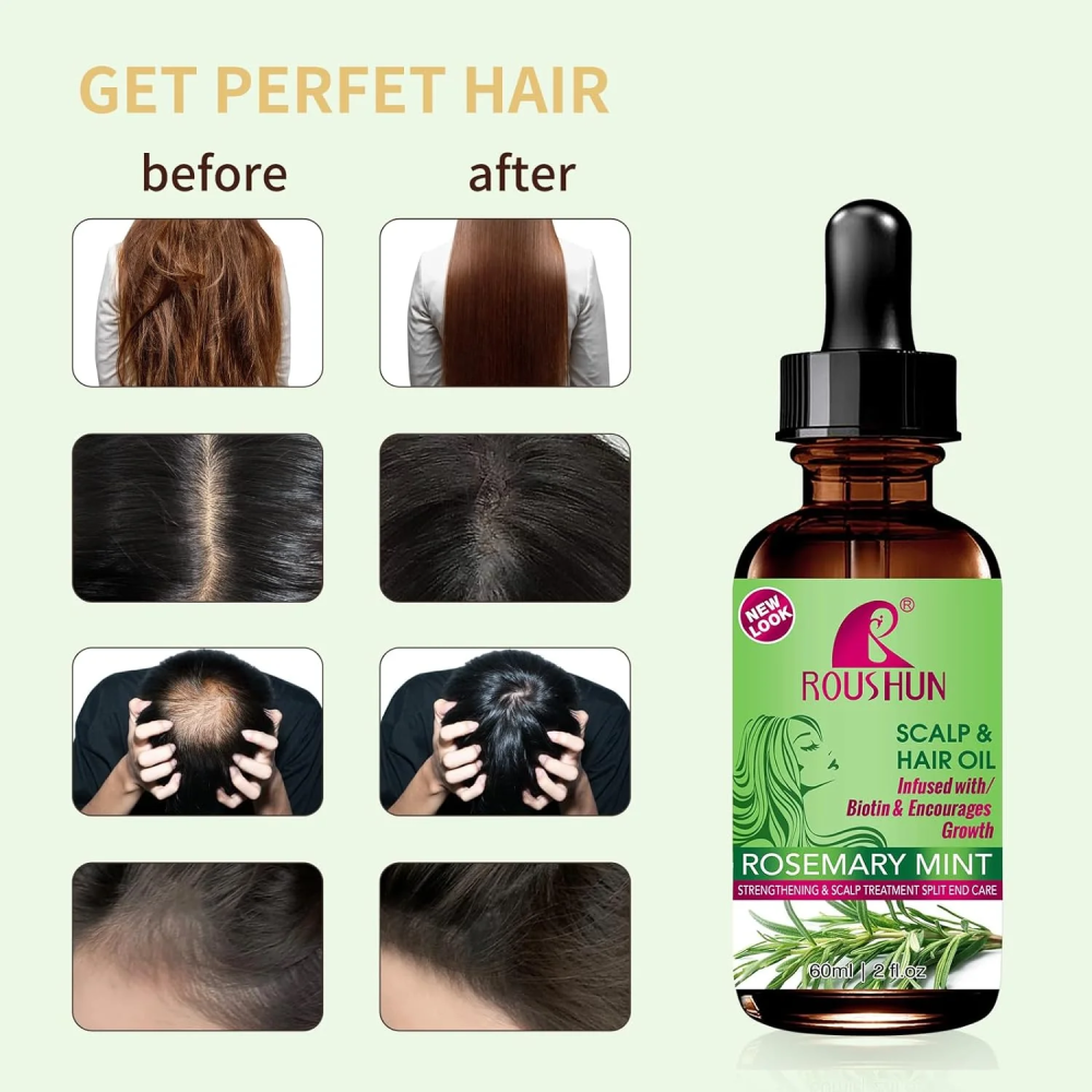 زيت إكليل الجبل و النعناع لتعزيز نمو الشعر وتنعيمة وتقويته من روشن 500 مل