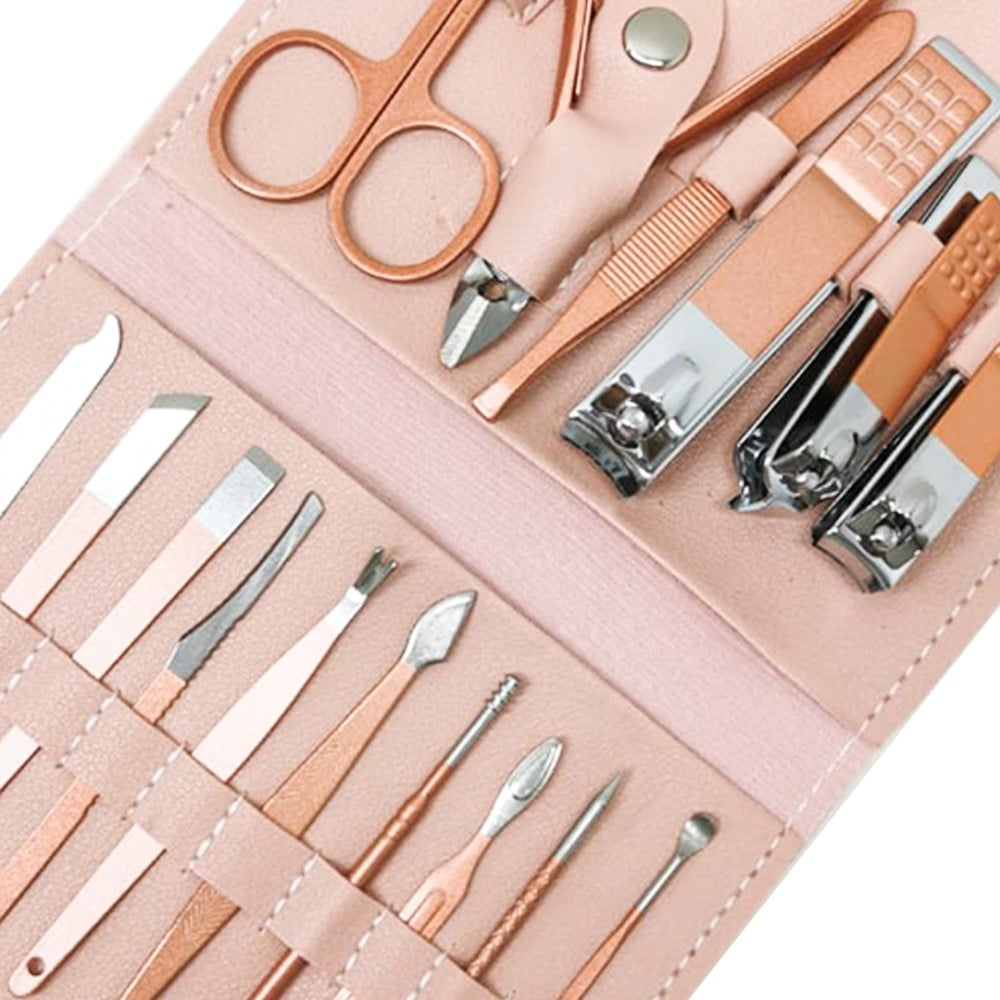طقم العناية بالاظافر 16 قطعة - برتقالي فاتح