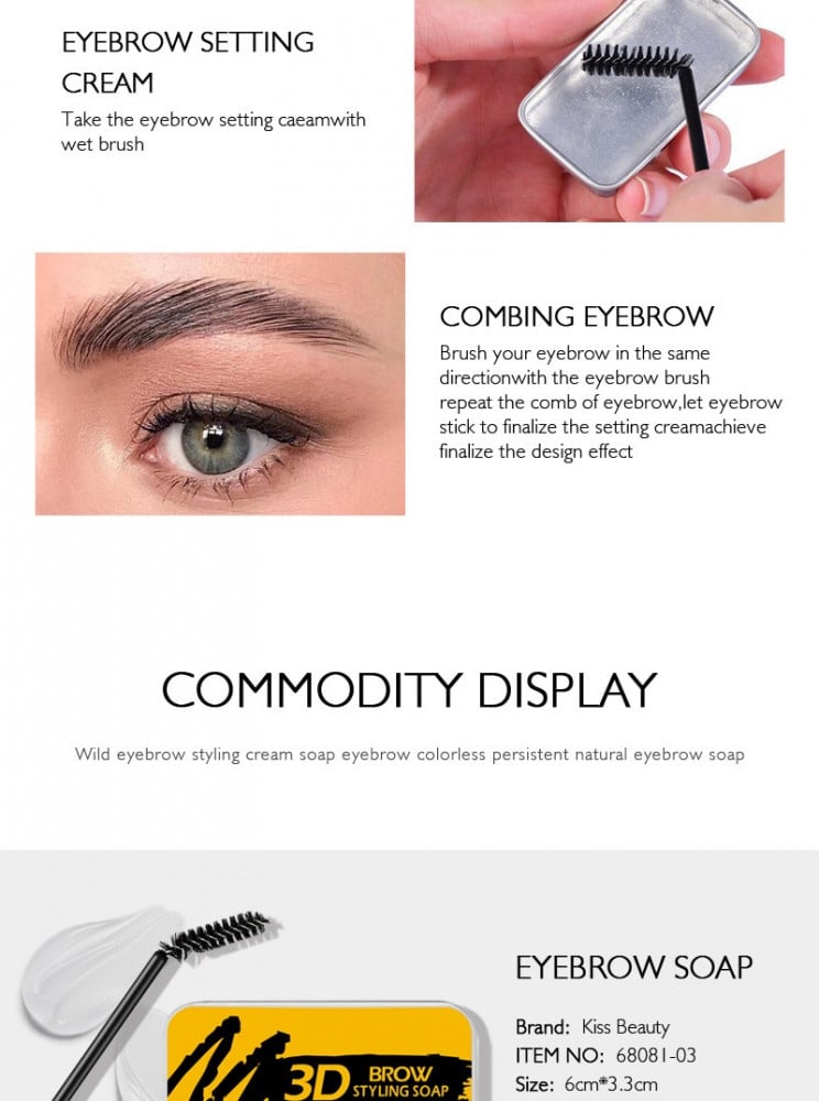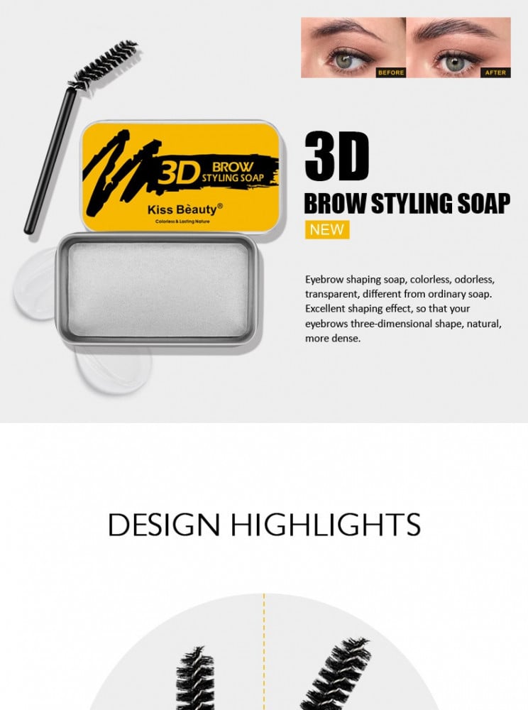 3D BROW STYLING SOAP صابونة الحواجب ... هي عبارة عن منتج صافي ، عندما يمسح على الحاجب الطبيعي يضيف سُمكاً و حجما و ملمسا.