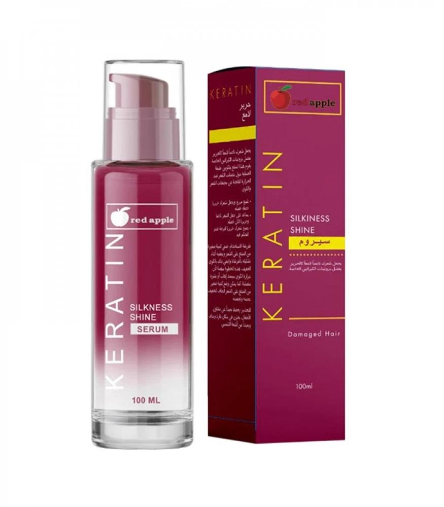 سيروم الكيراتين بالتفاح الأحمرمن ريد ابل - 100 مل يحتوي على خلاصة الكيراتين التي ستمنحك مظهرًا لامعًا، وتشكل طبقة واقية حول شعرك لمقاومة أضرار الحرارة، وتغذي شعرك لمنحك مظهرًا لامعًا.