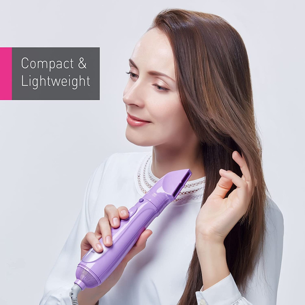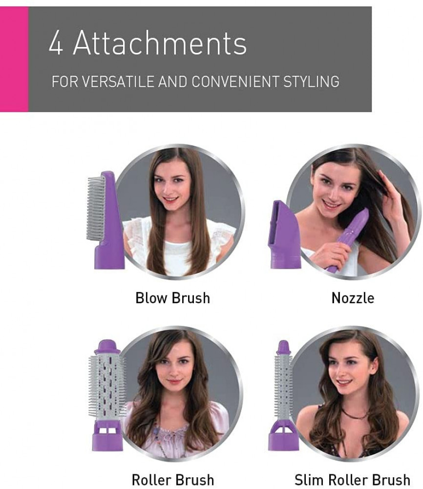 مع هذا الجهاز الرائع، سيكون بإمكانك تصفيف شعرك بكل سهولة؛ فهو يوفر لك المرونة اللازمة لتجعيد الشعر او فرده بكل سهولة ودون الحاجة إلى الذهاب إلى الصالون. يأتيك الجهاز مع اربع ملحقات متنوعة ومفيدة، كما وأنه مجهز بكيبل دوار 360 درجة يوفر لك حرية الحركة أثناء إستخدامه. يأتيك الجهاز باللون الارجواني المميز، وسيكون كل ما تحتاجينه للحصول على مظهر متميز كل يوم.