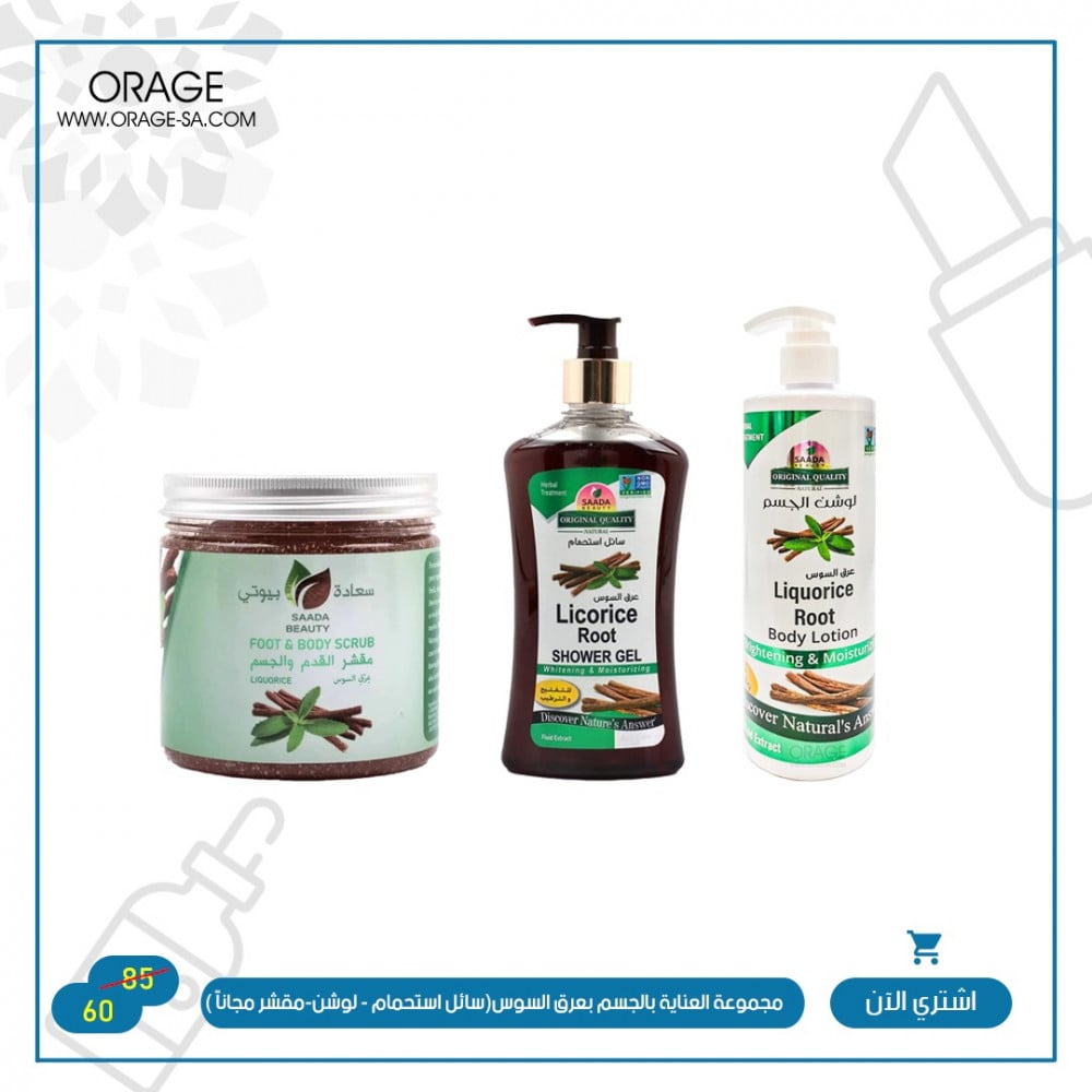 مجموعة العناية بالجسم بعرق السوس(سائل استحمام - لوشن - مقشر مجاناً )