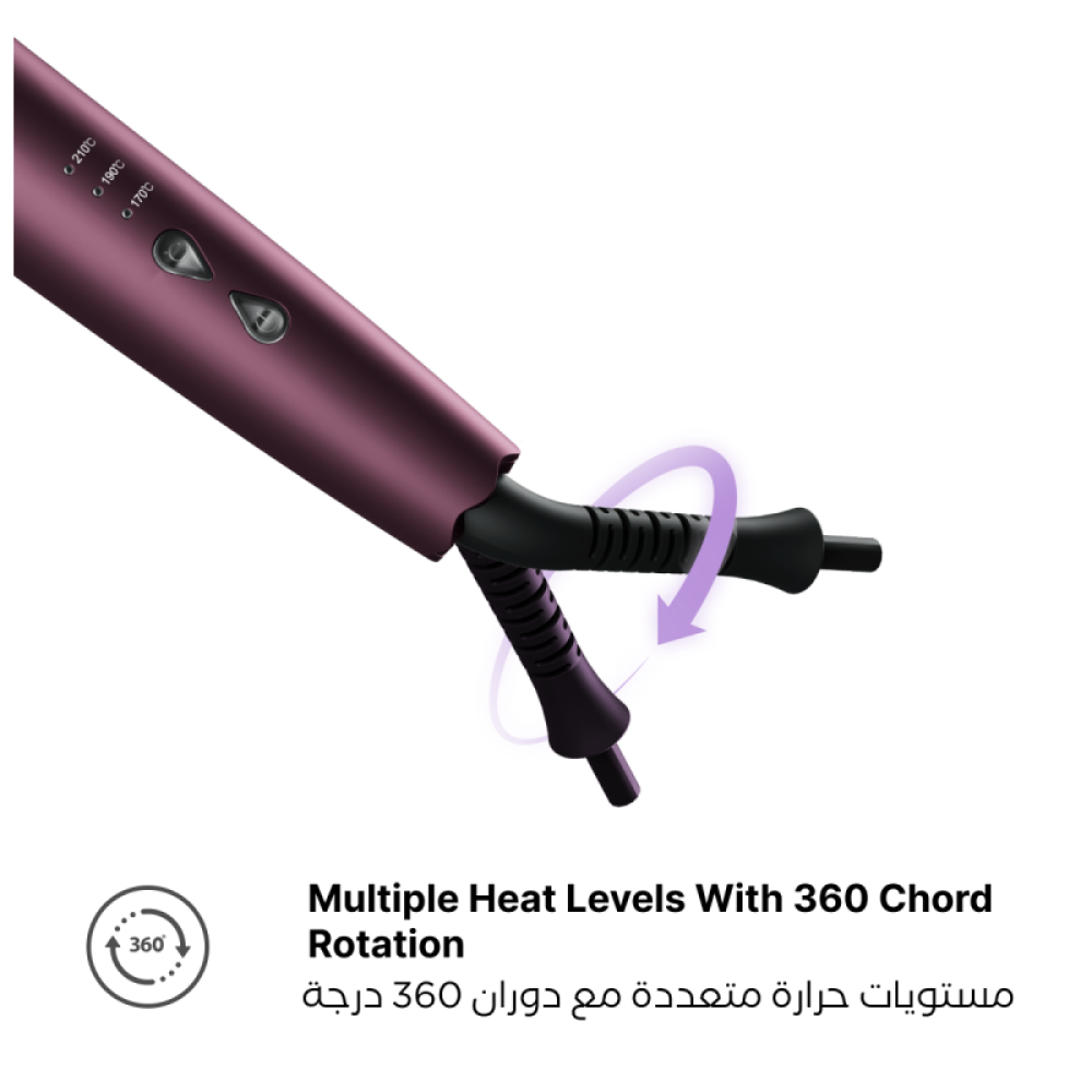 • يلتف لليمين واليسار ذاتياً لتموجي شعرك بسهولة وبسرعة.