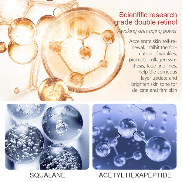 فيتامين أ-ريتينول : مكون فعال مضاد للشيخوخة، يساعد على تجديد الكولاجين بسرعة، مع تقليل القدرة على تحلل الكولاجين، مما يحافظ على صحة البشرة وجمالها.