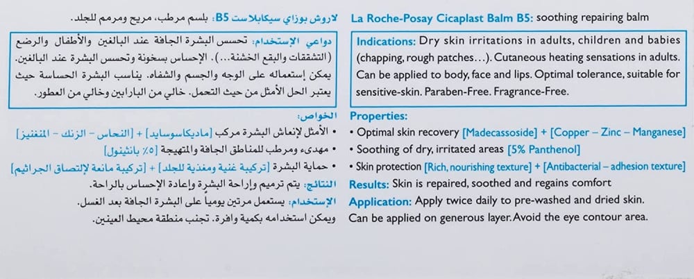 - سيكابلاست بوم B5 هو مرهم علاجي متعدد الاستعمالات يعمل على تهدئة و حماية البشرة الحساسة أو الملتهبة لجميع أفراد العائلة.