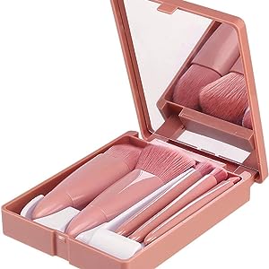 مجموعة فرش مكياج صغيرة محمولة مع مراة، مجموعة فرش سفر متعددة الاستخدامات مكونة من 5 قطع
