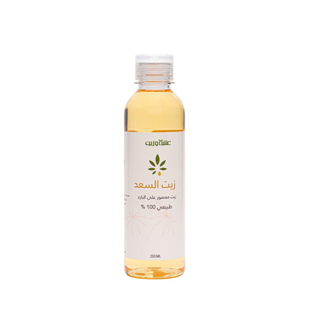 يتوفر زيت نبات السعد في عبوات مسبقة التعبئة لدى محلات العطارة والمتاجر،، وهو يستخدم في العديد من الوصفات التجميلية مثل التقليل من نمو الشعر الزائد.