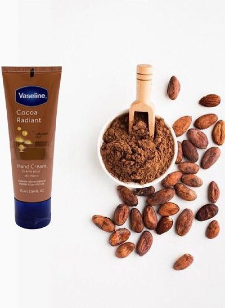- يساهم كريم اليدين وهج الكاكاو بشكل كبير في حماية بشرة يديك من تعرضها للجفاف الناتج عن أشعة الشمس الضارة أو مساحيق وسوائل التنظيف التي تتعرض لها باستمرار والتي تتسبب بمرور الوقت في ظهور التجاعيد والبقع والعلامات والخطوط الناعمة فيساعدك فازلين وهج الكاكاو على التخلص منها