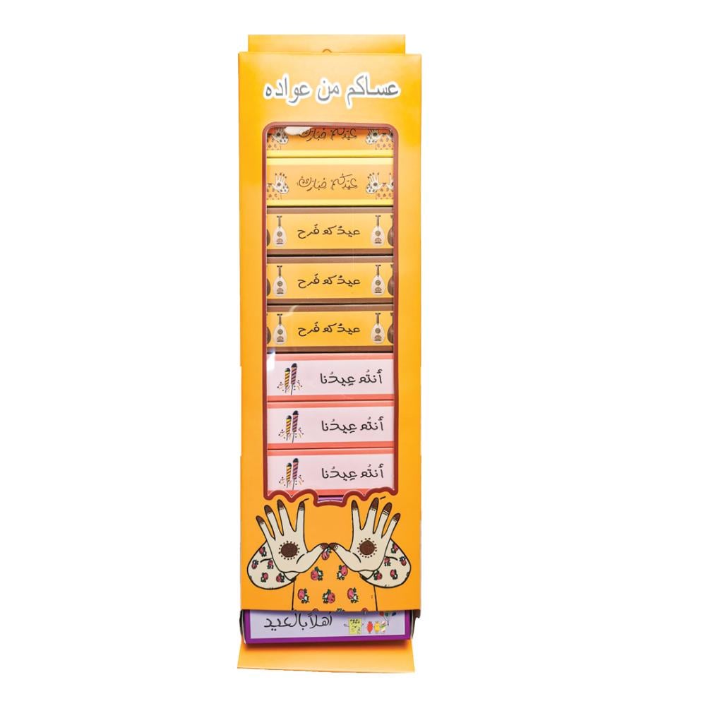 علبة جميلة وانيقة طوليه بها 12 علبة توزيعات يمكن للاشخاص سحب العلبة الصغيرة من الاسفل