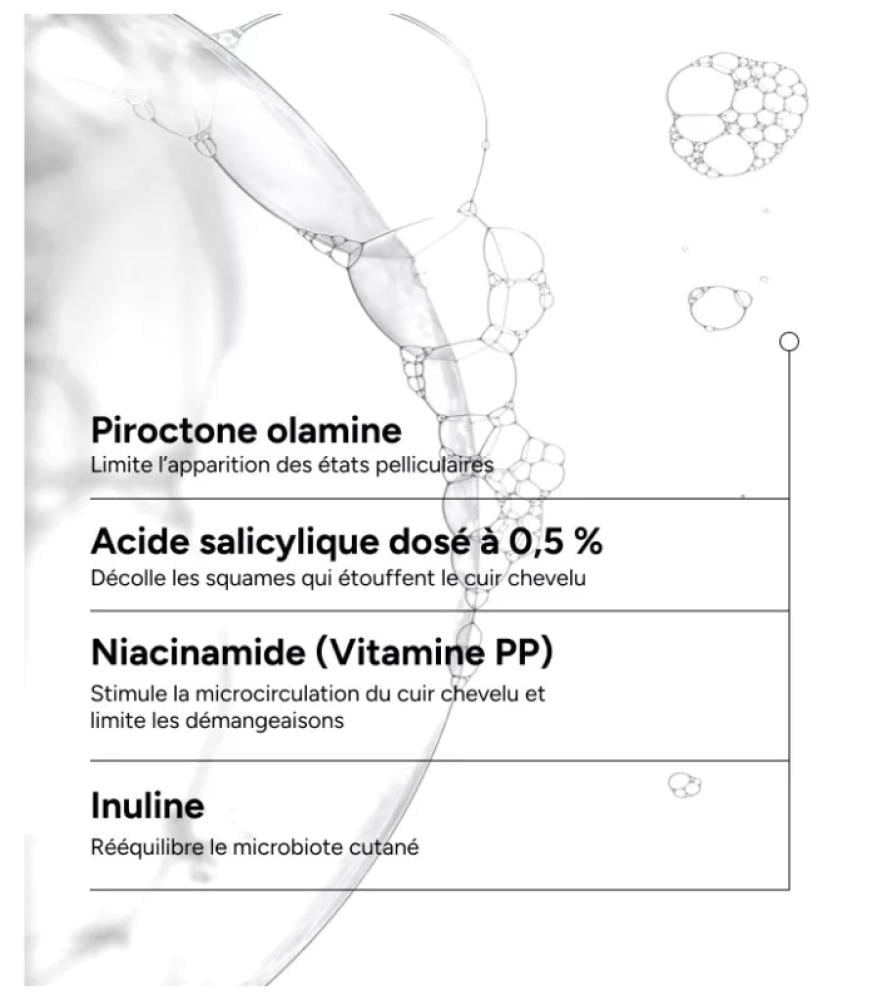 - يوفر فعالية شاملة ضد القشرة تتمثل في محاربة العوامل الرئيسية المسببة لقشرة الرأس، وهي خمائر الملاسيزية. فهو يحتوي على مركب مقاوم للفطريات يتكون من البيريثيون والزنك والبيروكتون أولامين للحد من تكاثر هذه الخمائر، ومنع القشرة وتقليل الحكة.
