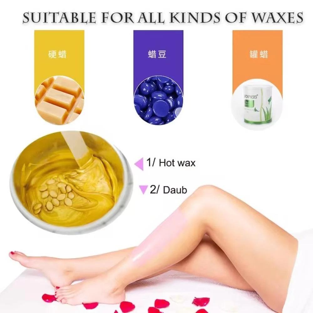 يسخن جميع أنواع شمع مزيل الشعر.
