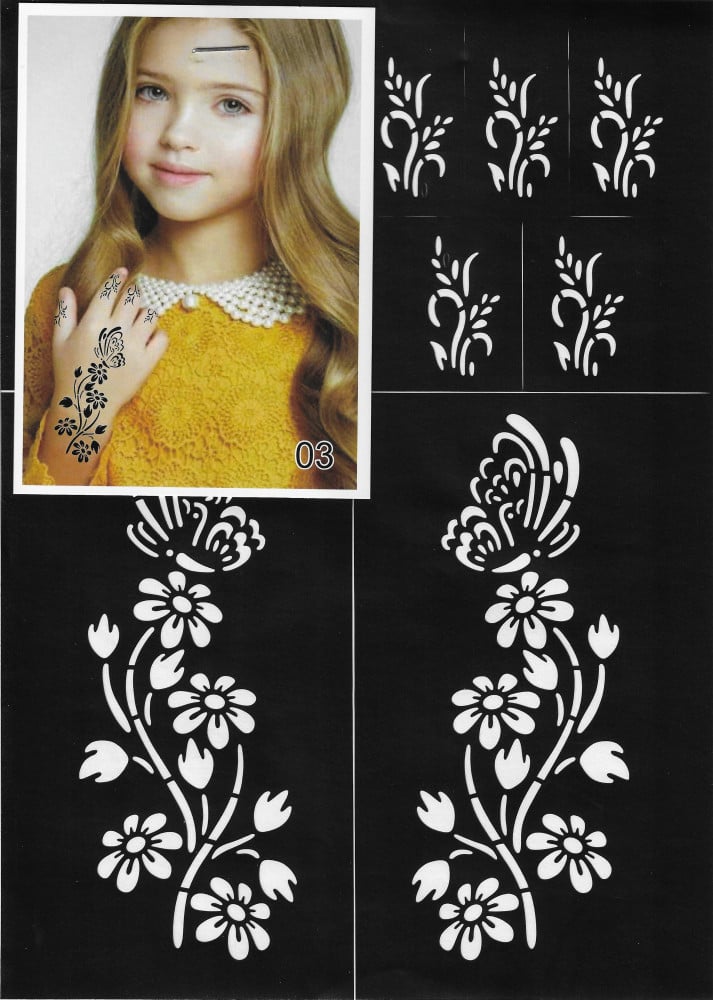 نقش حناء طبعات ناعم وجميل مناسب للوك كاجوال وللحفلات والأعياد واللقاءات مع االأقارب والأصدقاء. طوابع الحناء هذه سهلة الاستخدام ومصنوعة من مكونات عالية الجودة لا تسبب احمرار الجلد أو تهيجه وتدوم طويلاً.