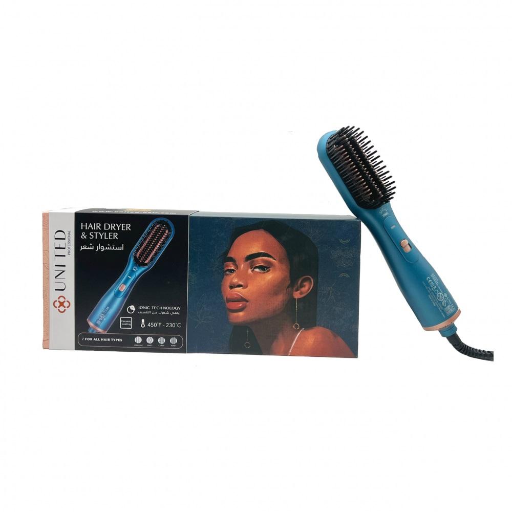 مصفف مملس الشعر من يونايتد 3 في 1، إعدادات حرارة متعددة، فرشاة مقاومة للحروق