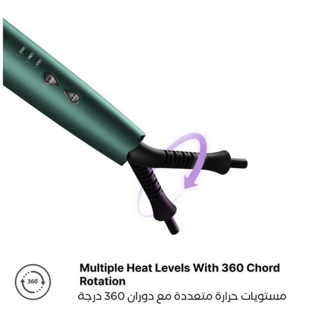 - سلك قابل للالتفاف لتتمكني من تمويج شعرك بحرية. مزود بغطاء للحماية من الحرارة.