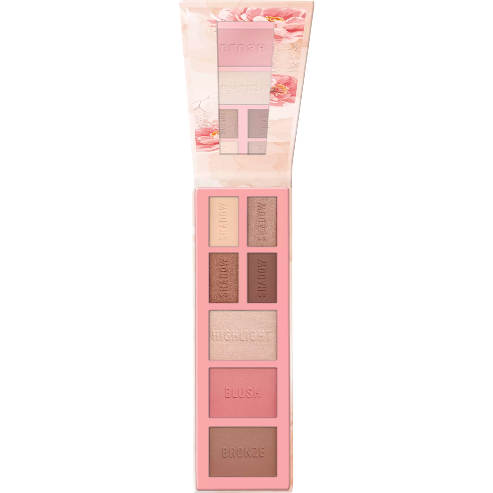 علبة الوجه والعيون بلوم بيبي بلوم هي علبة ظلال العيون والوجه في آن واحد، ومرآتها المدمجة تجعلها مثالية للاستخدام أثناء التنقل. أربعة ظلال عيون عالية الصباغة تخلق مظهرًا طبيعيًا للعين. يُضفي الهايلايتر والبرونزر والبلش ملمس حريري ناعم لبشرةً منعشةً.